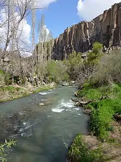 The Melendiz River (Turkish: Uluırmak [1]), is a stream forming the Ihlara Valley in the territory of the Aksaray Province, Turkey. In ancient times, its name was Potamus Kapadukus (Cappadocia River). It arises from Melendiz Mountain (Mt. Melendós in antiquity), passes through Ihlara Valley and Aksaray city center and empties into Tuz Lake.