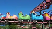 | Rollerskater | 1990 | 1999 | The first Vekoma Junior Coaster.[7] It reopened in Plopsaland as Rollerskater. Since 2019, the ride is called K3 Roller Skater, and is themed to Belgian girl group K3. | ![]() |
