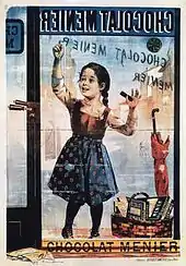 In 1893 the company began using advertising posters created by Firmin Bouisset featuring a little girl using a piece of chocolate to write the name Chocolat Menier on a wall or window. The small girl's sweet innocence conveyed the sweet chocolate message through her "chocolate graffiti". It proved to be a highly successful image and became an internationally recognized symbol. Firmin Bouisset's image of the little girl would be featured on Menier's packaged products as well as on promotional items such as reusable tin ware, creamers, bowls, sugar dishes, plates, canister sets, and even children's exercise books. Original Menier posters and assorted products as well as reproductions are still much in demand today.