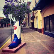In 2015, the city joined other cities in south Texas in support of the newly formed University of Texas Rio Grande Valley by adopting a resolution declaring August 31 as UTRGV day.[16] Also, they recognized the university by installing a boot with the university logos right across the municipal city hall.[17]