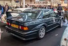 AMG was not part of Mercedes-Benz when the 190 was first produced, but a separate racing and tuning company. As AMG had racing experience in the DTM, they were tuning all the factory petrol engines for the customers and 190 E was one of them. Engine tuning added 25 hp (19 kW; 25 PS) over the standard car. Along with that aerodynamic features were added to the cars such as rear spoilers and front splitters in order to improve high speed stability, alloy wheels and a leather interior.