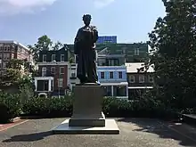 The upper mall area was often used for concerts and gatherings. At a political rally in 1969, activist Angela Davis proposed renaming the park Malcolm X Park, but ultimately this name change was not approved.[2] Locals continued to call the park Malcolm X Park in honour of the assassinated civil rights minister. In 2023 after the lower plaza renovation (to make park wheelchair accessible) was complete and the lower plaza reopened,[11] NPS for the first time acknowledged the park's local name: Malcolm X Park.[12][13][14]