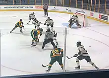 The Warriors had a single win — against Holy Cross — during the pandemic-shortened 2020–21 season. Of the 16 games played, four were against ranked opponents.[27] As in previous seasons, the Warriors were well-represented in the Hockey East All-Academic Team, with 21 of 24 Merrimack players recognized. Merrimack was surpassed in the number of All-Academics only by the University of Connecticut's 22. The Warriors also claimed three of nine spots in the league's All-Academic All Star Team.[28]