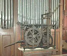 A turret clock for St Swithun's was made late in the 17th century.[10] Its original dial had only an hour hand.[10] In 1867 this was replaced with a new dial that has both hour and minute hands.[10] Some time after 1989 a new turret clock was installed; the 17th century original is now displayed in the nave.