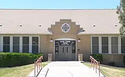 ![]() Frank O'Brien Papen Community Center, occupying the former Mesilla Park Elementary School, at 304 Bell Avenue (west corner of Bell and Linden Avenues) in Las Cruces, New Mexico. Center of front (northeast side) of building, which faces Linden. | |