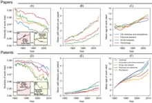 - Chu, Johan S. G.; Evans, James A. (12 October 2021). "Slowed canonical progress in large fields of science". Proceedings of the National Academy of Sciences. 118 (41): e2021636118. Bibcode:2021PNAS..11821636C. doi:10.1073/pnas.2021636118. ISSN 0027-8424. PMC 8522281. PMID 34607941.