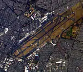 In 1956 the airport had four runways in service: 05L-23R (2,720 m long, 40 m wide), 05R-23L (3,000 m long, 45 m wide), with electric lights for night-time service; 13-31 (2,300m long, 40m wide) which had been built to relieve 14-32, to which residential areas had encroached too closely; and 5 Auxiliar (759m long).[15]