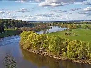 Most of the park is on the right bank of the Desna River, which runs north to south down the eastern and southern borders of the park.[1] The terrain is glacial moraines, sloping terraces, floodplain terraces, and elevated plains with many tributary streams running down to the river. The hills range from 125 to 208 meters above sea level. The general area is part of the Dnieper River Lowlands. The park is about 20 km west-to-east, and 30 km north-to-south. It is situated about 110 km east of the regional city of Chernihiv, and 60 km downstream from the border with Russia to the north.[1]