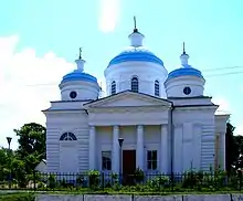 The Dormition Cathedral, built in 1815–1830 in the Neoclassical style, functions in the town.