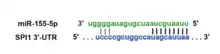 MiR-155 is a microRNA that in humans is encoded by the MIR155 host gene or MIR155HG.[3] MiR-155 plays a role in various physiological and pathological processes.[4][5][6][7][8][9] Exogenous molecular control in vivo of miR-155 expression may inhibit malignant growth,[10][11] viral infections,[12] and enhance the progression of cardiovascular diseases.[13]