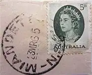 Initially, there was no post office, but a post box there was serviced by guards on the passing trains.[26] A post office was established at Miandetta, and in August 1908, the postmistress was convicted and sentenced to three months imprisonment, for the theft of a letter containing a cheque.[27] The post office closed in 1976.