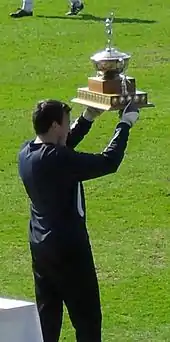 Utook over the captaincy following the absences of Daniel Parslow and David McGurk from the team in March 2010.[82] He signed a new two-year contract with York in the same month.[83][84] Ingham was named as York's Clubman of the Year for 2009–10 before their final home match of the season prior to play-offs against Grays Athletic.[85] He was also named the Community Player of the Year, which recognised his community work in York.[85] He played in both legs of York's play-off semi-final victory over Luton Town, which finished 2–0 on aggregate.[86] He started in the 2010 Conference Premier play-off final at Wembley Stadium on 16 May, which York lost 3–1 to Oxford.[86] He finished the season with 55 appearances for York.[86]