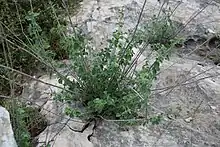 Micromeria fruticosa (syn. Clinopodium serpyllifolium subsp. fruticosum), commonly known as white micromeria or white-leaved savory, is a dwarf evergreen shrub endemic to the eastern Mediterranean (Turkey, Syria, Lebanon and Israel),[1] as well as found in the Balkans.[2] It is a member of the genus Micromeria, in the family Lamiaceae. It is known as zuta levana (זוטה לבנה or זוטא לבנה) in today's Modern Hebrew and ashab a-shai (عشب الشاي) in Arabic.[3] The Bedouins, however, call it by the Arabic name, qurniyya (Arabic: القورنِيه), believed to be a cognate of the Hebrew qoranit, an aromatic herb described in the Mishnah.[4] The plant's aromatic leaves (resembling mint) are used in making decoctions (herbal teas).