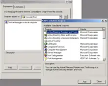 - Active Directory Users and Computers, Domains and Trusts, and Sites and Services