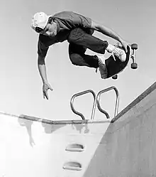 Mike Smith is an American professional vert skateboarder from Southern California. He is also the founder of Liberty Skates, skateboards.[2] Smith is credited as being the inventor of both the Smith Stop (or Smith Stall) maneuver,[3][4] (which later became known globally as the Smith Grind) and of the Smithvert, a personalized variation of the invert.[5][6]