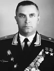 Mikhail Vasilyevich Kuznetsov (Russian: Михаи́л Васи́льевич Кузнецо́в; 7 November [O.S. 25 October] 1913 – 15 December 1989) was a regimental commander flying ace in the Soviet Air Forces during the Second World War who was twice awarded the title Hero of the Soviet Union. After the war he became a general-major.