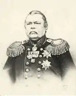 Count Mikhail Nikolayevich Muravyov (Russian: Граф Михаи́л Никола́евич Муравьёв; 12 October 1796 in Moscow – 12 September 1866 in Saint Petersburg) was a Russian imperial statesman of the 19th century, most known for his putting down Polish uprisings, and subsequent cultural and social depolonization of Northwestern Krai (today's Belarus and Lithuania). He should not be confused with his grandson, Mikhail Nikolayevich Muravyov, who served as Russian Foreign Minister between 1897 and 1900.