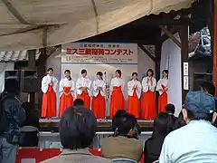 Miko clothing (巫女装束, miko shōzoku) is the clothing worn by miko (shrine maidens) at Shinto shrines.