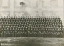 However, after the Gojong's exile to the Russian legation, the military academy was not able to operate properly as an academy.[1] After Gojong's return to the palace, Minister of Military Yi Jong-geon asked for the establishment of the military academy in March 1898.[2] By the imperial decree, old academy, that was established in 1896 was disbanded in May 1898.[3] On 1 July 1898, the Military Academy was properly established and was subordinated to the Ministry of Military.[1] 200 cadets were selected, and education of cadets started.[2] On 22 June 1899, the academy became subordinated to the Board of Marshals as an effort of Gojong solidifying the military of Korea.[3] In January 1900, first exam for graduation. First 128 graduates were commissioned as Second lieutenant after the exam.[2]