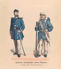 Slavery was undermined in Brazil as slaves were freed to serve in the war.[10] The Brazilian army became a new and expressive force in national life. It transformed itself into a strong institution that, with the war, gained tradition and internal cohesion and would take a significant role in the later development of the history of the country.