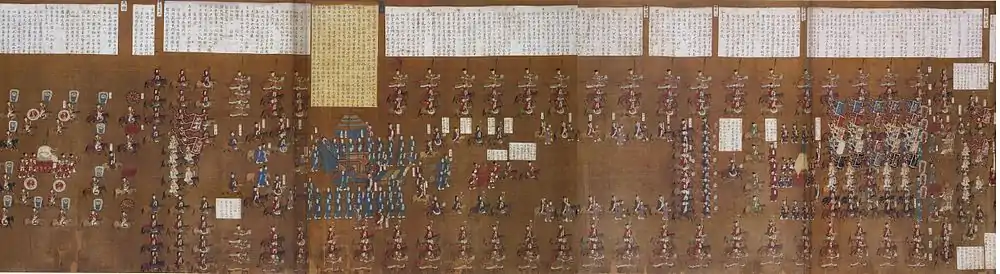 With the proclamation of their own dynasty, the Tanguts began a protracted campaign of military aggression against the Song, lasting six years until a truce was called in 1044.[24] The Liao dynasty took advantage of the situation and attacked the Song as well. Although ultimately repelled, the Song agreed to increase annual tribute to 200,000 taels of silver and 300,000 bolts of silk.[25]