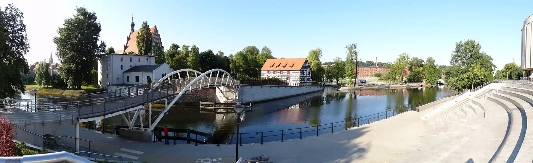 | Lovers' bridge | Footbridge | Previously (1789-1945), the place of a bridge linking Mill Island warehouses to the royal granaries (Opera Nova's location). It was destroyed during liberation fights in January 1945 of Bydgoszcz and never rebuilt. The actual footbridge is part of the revitalization of Mill Island, it was completed in February 2008.[40] | ![]() |