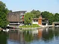 A dike separates the north-western part of the Mill Island from Brda river: in this area is set a waterfront mooring for yachts, along with a marina and a hotel, at the opposite of Rother's Mills.