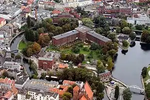 Mill Island (Polish: Wyspa Młyńska) is a historic area located in the Old Town of Bydgoszcz, Poland, covering approximately 6.5 ha: today it is a place with cultural and recreational facilities, surrounded by the Brda river and its branch.[1] The island received the 2012 certificate for Best Tourist Attraction from the Polish Tourist Organisation.[2]