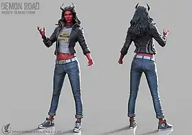 In October 2015, ahead of the German language release of Demon Road, Carsten Biernat of Unique Voodoo Studios revealed that the institution had been commissioned to create the cover of the German version of the novel, sharing concept sculptures of Amber in her demon form they had created on being asked to "bring the character to life".[3][4] In April 2016, Derek Landy and Unique Voodoo expressed interest in the concept models being produced as Demon Road collectable merchandise.[5]