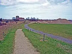 When Swale Council started planning for the Sittingbourne Northern Relief Road (SNRR)[9] which passes on the northern boundary of the park near Church Wharf on Milton Creek, it decided in 2008 to increase the size of the park to incorporate the Saxon Shore Way (running along the Milton Creek), which links Sittingbourne town centre to the country park, which was renamed in 2009 as Milton Creek Country Park.[10] The Saxon Shore path passes through a sequence of viewpoints, one at each of the historic wharves along the creek, including Grandsdens Wharf, Eastwoods’ Wharf and Church Wharf. The aim of the project was to provide a ‘green heart’ for Sittingbourne.[11]