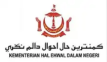 The Ministry of Home Affairs (MOHA; Malay: Kementerian Hal Ehwal Dalam Negeri, KHEDN) is a cabinet-level ministry in the government of Brunei which is responsible for the country's administrative divisions, municipal areas, immigration, labour, fire and rescue services, prison and rehabilitation institutions, and national disaster management. It was established immediately upon Brunei's independence on 1 January 1984.[1] It is currently led by a minister and the incumbent is Ahmaddin Rahman,[lower-alpha 1] who took office since 7 June 2022.[4] The ministry is headquartered in Bandar Seri Begawan.