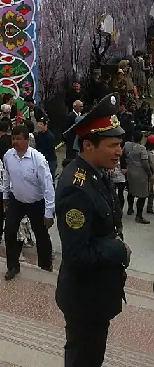 The Special Purpose Mobile Unit (Russian: Отряд Мобильный Особого Назначения) or OMON is a special police unit of the VKD, originally created as the special forces of the Soviet Militsiya. The civil war in the country in the 90s was considered to have been caused by the local OMON defecting to anti-Rahmon Nabiyev protesters in May 1992.[11] A significant portion of the OMON at the time consisted exclusively of the minority Pamiri people. In February 2008, OMON commander Lieutenant Colonel Oleg Zakharchenko was killed in a shootout with a police unit composed of former opposition fighters in Gharm.[12] Colonel Gulmurod Khalimov, the former head of the Tajik OMON, made headlines in 2015 when he then defected to the Islamic State of Iraq and the Levant (ISIL).[13][14]