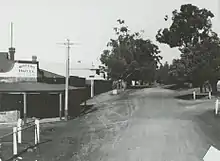 The Magpie and Stump Hotel, at the entrance to the village, was first licensed (as the Mintaro Hotel) in December 1850, though it may have been operating earlier. The period from 1850-1860 was a prosperous one. A large proportion of the town's buildings date from this time and are located on the original subdivision.[19] Significant slate deposits were discovered in the early 1850s by a local farmer and the Mintaro Slate Quarry opened in 1854. By the early 1860s Mintaro slate was famous. By the early 1880s there were about 50 men employed at the quarries.[16]