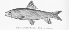 The spotted sucker (Minytrema melanops) is a species of sucker (fish) that is native to eastern North America. The spotted sucker inhabits deep pools of small to medium rivers over clay, sand or gravel. They are occasionally found in creeks and large rivers. Through its life stages, the spotted sucker goes from a mid-depth predator to a bottom forager. Spotted suckers have a lifespan of approximately six years and spawn in April and May. Limited knowledge of the occurrence, abundance, and natural history of this species has been an impediment to status assessment and the determination of need for conservation measures within this family.[2]