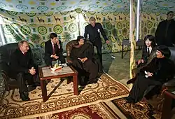 On 1 November 2008, she was a guest of Prime Minister Vladimir Putin in Moscow, and performed a concert in his honor. The two visited the tent of visiting Libyan leader Muammar Gaddafi.[29]