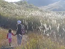 Miscanthus sinensis, the eulalia[1] or Chinese silver grass,[2] is a species of flowering plant in the grass family Poaceae, native to eastern Asia throughout most of China, Japan, Taiwan and Korea.