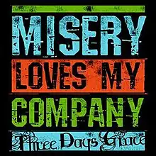 "Misery Loves My Company" is a song by Canadian rock band Three Days Grace, from their fourth studio album Transit of Venus released on May 14, 2013. The track became the band's tenth song to reach number-one on the Billboard Mainstream Rock chart in its November 2, 2013, issue.[1][2] It is the band's eleventh No. 1 single in total.[3] This was the band's first single to not enter the Billboard Alternative Songs chart. It is the last single to feature Adam Gontier on lead vocals.[4]