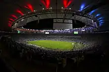 In the Men's World Cup in 2014 in Brazil, the US Men's National Soccer Team made it to the knockout round of the World Cup where they lost to Belgium, 2–1.[23] After this loss, the USA men were able to collect $8 million for the team. In 2014 alone, $576 million was set aside for Men's World Cup rewards.[24] That year, in the final match, the German men's team triumphed over Argentina, 1–0, and brought home $35 million.[24][25] The 2015 Women's World Cup Final was the second most watched soccer game in the history of the United States, trailing the 2014 Men's World Cup Final by less than half a million viewers. The winning team, the US, brought home $2 million as a reward.