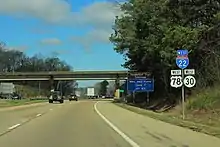 | 32.2 | 51.8 | Eastern end of I-22 / US 78 overlap; western end of MS 15 overlap; MS 30 east follows exit 64 | |||