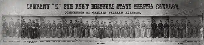 Militia cavalry units participated in most of the significant engagements in Missouri from 1862 to 1864. They were eligible for re-enlistment and, unusually for militia, were eligible for Federal pensions.[1] The Missouri State Militia participated in the Battle of Westport, one of the largest battles west of the Mississippi, and the Battle of Mine Creek, the largest cavalry battle west of the Mississippi river, involving approximately 10,000 troops.