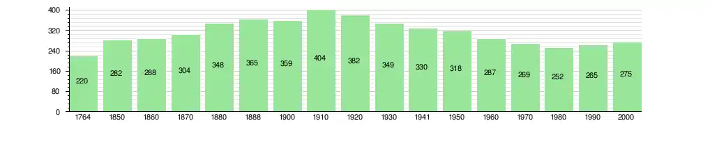 Missy has a population (as of December 2020) of 368.[7] As of 2008, 8.9% of the population are resident foreign nationals.[8] Over the last 10 years (1999–2009 ) the population has changed at a rate of 13.5%. It has changed at a rate of 8.9% due to migration and at a rate of 3.9% due to births and deaths.[9]