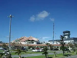 Miyako Airport has a single three-story terminal building with five gates. The terminal includes four restaurants including a A&W, a shopping promenade and an observation deck.[5] The airport has parking berths for three mid-sized jet aircraft.[2]