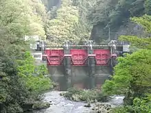 Mizukoshi Dam is a gravity barrage type dam located in Yamaguchi prefecture in Japan. The dam is used for power production. The catchment area of the dam is 270 km2. The dam impounds about 14 ha of land when full and can store 796 thousand cubic meters of water. The construction of the dam was started on and completed in 1965.[1]