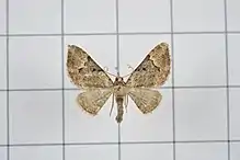 Its wingspan is about 20 mm. Palpi with second joint reaching only just beyond the frontal tuft. Forewings usually with a tuft of raised scales on discocellulars. The body is dark brown, with black irrorations (speckles) and fuscous suffusion. Forewings with oblique, sub-basal, and antemedial lines angled below costa. The medial area blackish, with black cell-speck and edged by oblique black lines, where the outer highly dentate below veins 3 and 2. There is an indistinct waved postmedial line and waved grey sub-marginal line. Patches of fuscous suffusion found on margin below apex and above outer angle. Hindwings with indistinct dark antemedial, medial, postmedial and submarginal lines, becoming obsolescent on costal area, which is pale.[4]