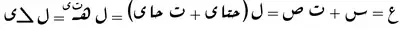 • Letter cursivity (connectedness) of Arabic is also taken advantage of, in a few cases, to define variables using more than one letter. The most widespread example of this kind of usage is the canonical symbol for the radius of a circle نق (Arabic pronunciation: [nɑq]), which is written using the two letters nūn and qāf. When variable names are juxtaposed (as when expressing multiplication) they are written non-cursively.