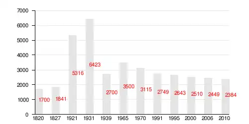 In 1940, during the Nazi Occupation of Poland, German authorities established a ghetto in Mogielnica to confine, persecute and exploit its Jewish population.[2][3][4] The ghetto was demolished on February 28, 1942, when its 1,500 inhabitants were transported in cattle trucks to the Warsaw Ghetto, the largest in all of Nazi-occupied Europe, with over 400,000 Jews crowded into an area of 1.3 square miles (3.4 km2). From there, most victims were sent to the Treblinka extermination camp.[5][6][7][8] The Nazis demolished the 18th-century Jewish cemetery located on the left side of the road to Grójec, near Przylesie Street, and used its headstones for pavement. A monument now stands in its place.
