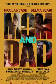 Mom and Dad is a 2017 black comedy horror film written and directed by Brian Taylor. Starring Nicolas Cage and Selma Blair, the film premiered at the 2017 Toronto International Film Festival, and was theatrically released on January 19, 2018 by Momentum Pictures. A joint British and American production, the film underperformed at the box office but received generally positive reviews from critics.