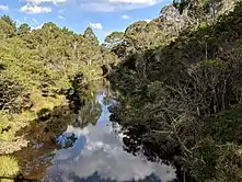 Dispossessed of their best land during settler colonisation, individual Aboriginal families sought land on which to live. 140 acres of land was set aside as a reserve for Aborigines, in 1879—north of Mongarlowe in the neighbouring Parish of Mongarlowe—in the name of an Aboriginal woman, Mary Ann Willoughby.[7][8] In 1885, a second reserve, of just under 9 acres, was set aside there, in the name of another Aboriginal woman, Margaret Bryant.[9] In 1893, these earlier reserves were revoked and a new reserve of 50 acres was set aside on the left bank of Currowan Creek, not far from its confluence with the Clyde River estuary, on the coastal side of the Budawang Range. That reserve, Currowan Creek Aboriginal Reserve, lasted until 1956.[10][11]