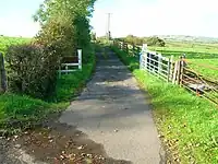 Until 1945 the Douglas Firebrick Company Ltd had its works located where the Wilson Car Auction company now trades (2010).[30] A double track narrow gauge railway, working through a gravity driven 'cable and pulleys' system ran from the works to the fireclay mine on the lands of High Monkcastle.