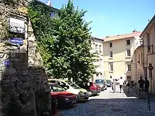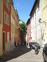 The Montée du Gourguillon is an old street in the 5th arrondissement of Lyon, France, on the hill of Fourvière, between the Saint-Jean and Saint-Just quarters.[1] Montée translates in English to the nouns "climb" or "rise "[2] and is given to a number of steep streets. The ancient Roman settlement of Lugdunum was established here in 43 BC. The montée du Gourguillon begins at the Place de la Trinité and ascends to the rue des Farges. Fourvière is known as "the hill that prays" because the Basilica of Notre-Dame de Fourvière, several convents, and the Archbishop's residence are located there. The street belongs to a zone classified by UNESCO as a World Heritage Site.